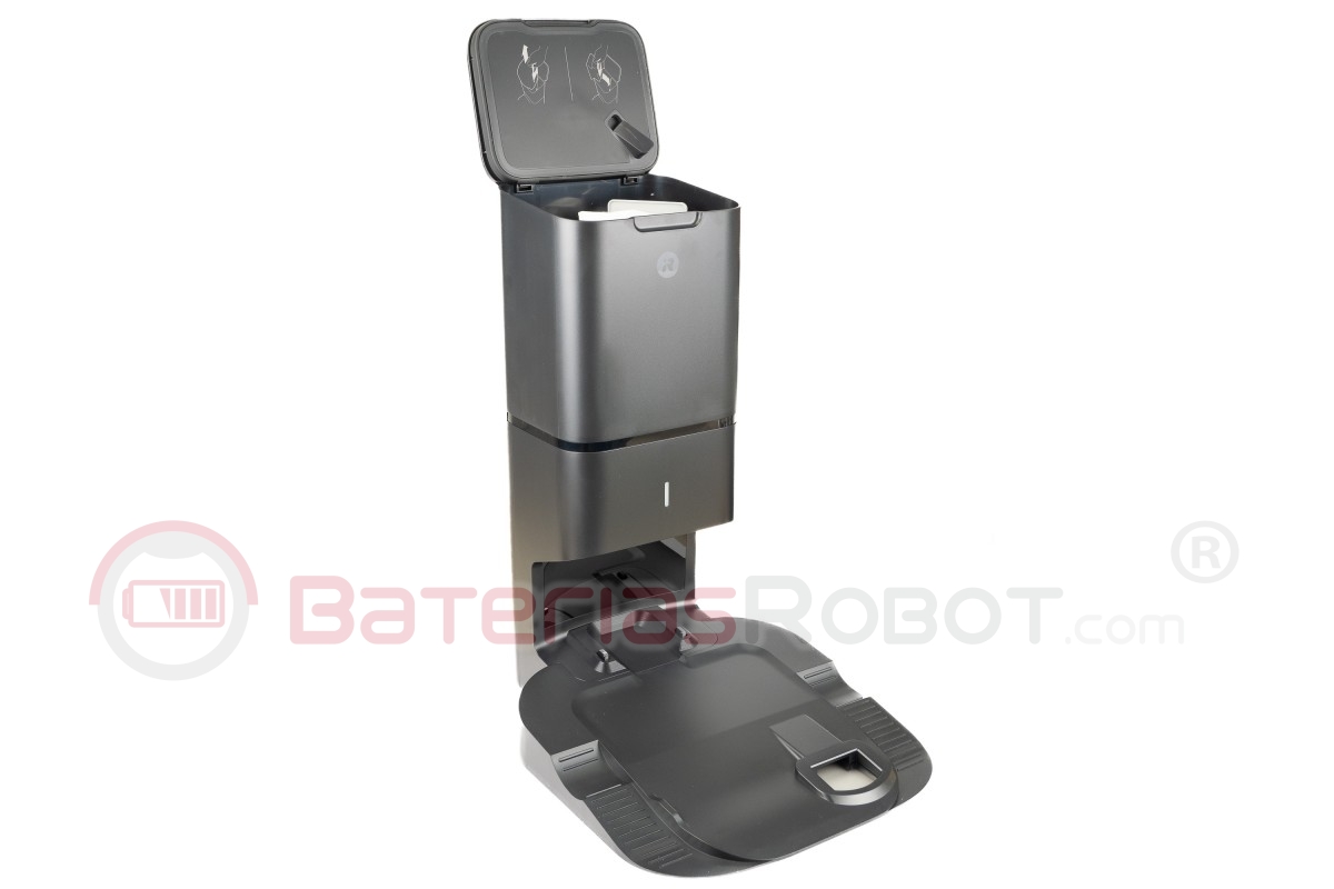 Tiene capacidad para el vaciado de 30 depósitos de suciedad, polvo y pelos. Ya no tendrás que preocuparte de la limpieza de tu Roomba durante semanas.