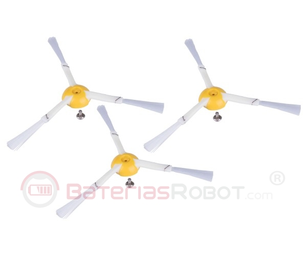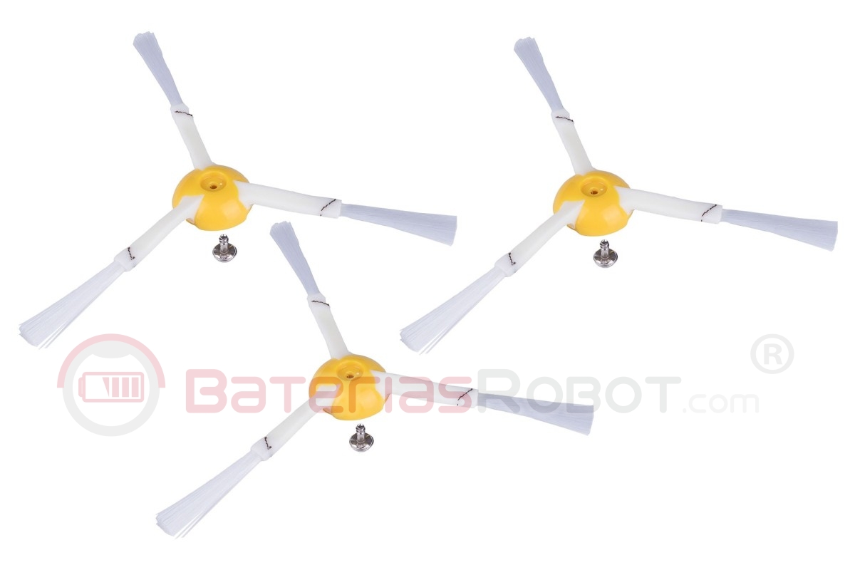 Kit de recambio de 3 cepillos laterales compatibles con el robot aspirador Roomba de iRobot, fabricado con cerdas de poliamida muy resistente a la abrasión.