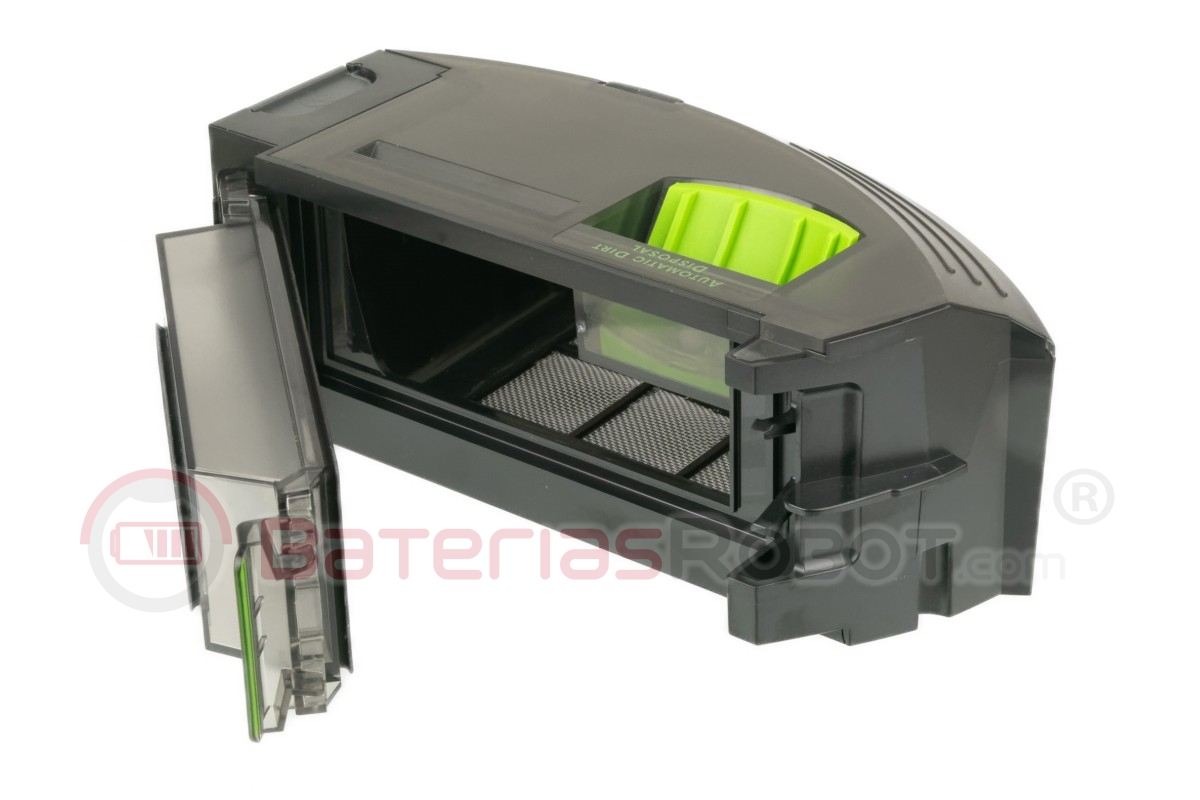 Depósito original para Roomba con salida de evacuación automática de suciedad en torres de vaciado.