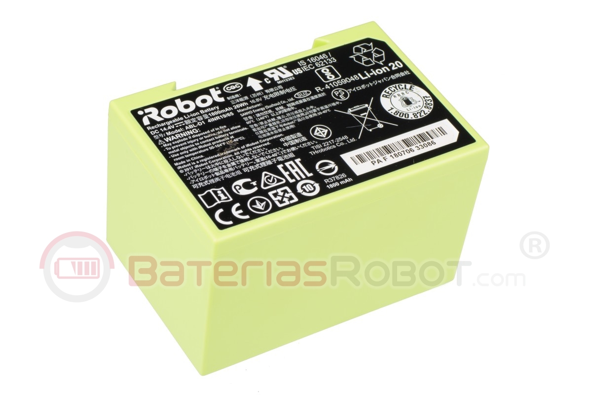Batterie Lithium Li-ion d'origine Roomba. Fabriqué par iRobot®, compatible avec tous les modèles iRobot Roomba des séries e, i, j.
