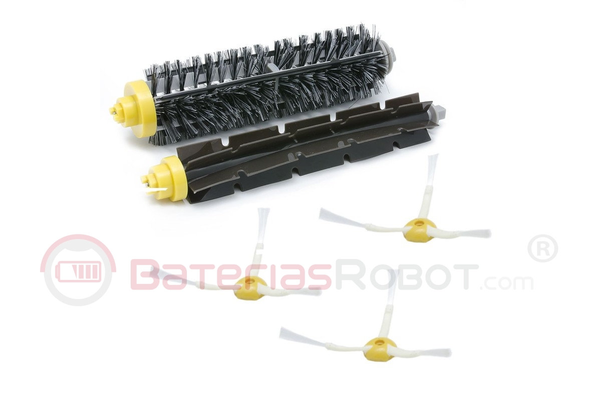 Brosse à poils en polyamide + brosse souple + 3 brosses latérales. Plus de résistance à l'abrasion que les brosses d'origine . 100% compatible avec tous les modèles Roomba 600 et 700.