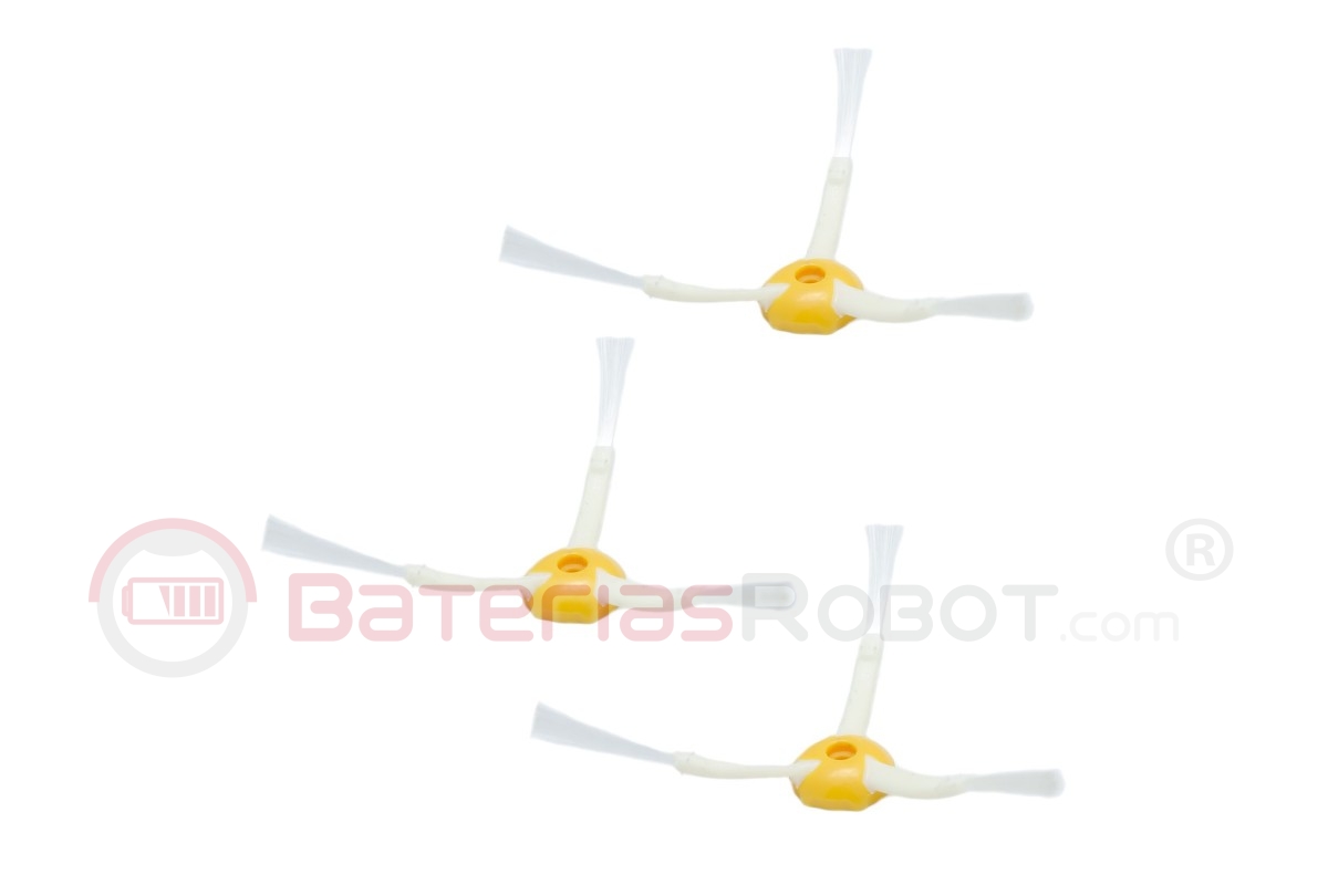 Kit de remplacement de 3 brosses latérales compatible avec l'aspirateur robot iRobot Roomba, fabriqué avec des poils en polyamide hautement résistants à l'abrasion.