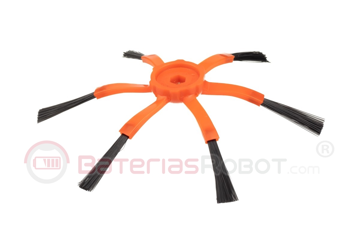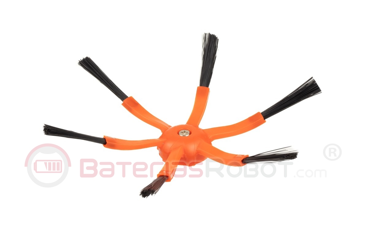 Brosse latérale orange à 6 lames compatible avec les aspirateurs robots Xiaomi séries S50, S55, 1S, T4 et T6. Fabriquée avec des matériaux de haute qualité.